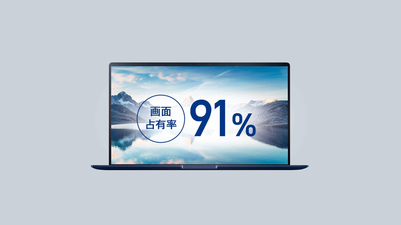まずディスプレイの画面占有率は約91%で枠がほっとんどないです。このギリギリまで詰めたベゼルのおかげて、15.6インチの大画面でありながら本体サイズは最小レベルです。